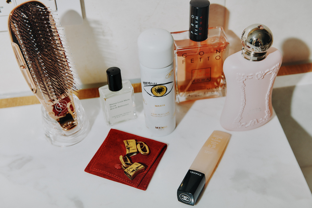 Since having my baby, I've become very sensitive to what I wear or spray on myself since she’s always on my skin, but years ago, I was so obsessed with fragrances that I wanted to start my perfume brand. I will also admit that I’ve started to gatekeep some of my fragrances because people will buy them and it’s confusing when they smell like me. [Laughs] That said, my all-time favorite is Battito d’Ali from Profumum Roma. It’s sweet but masculine and soft and strong at the same time. It’s sexy, too, and makes me feel confident. Mark my words: Just like everyone suddenly starting wearing Maison Francis Kurkdjian’s Baccarat Rouge 540, Battito is the next big scent.”