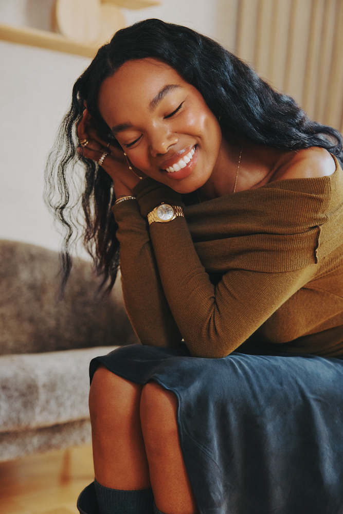 When I try too many products, my skin gets really crazy, so I keep my skincare routine very simple. Dr. Barbara Sturm’s Enzyme Cleanser is great—I love exfoliating my face, but gently. And then iS Clinical’s Hydra-Cool serum is chef’s kiss. It’s so hydrating. The Darker Skin Tones face cream from Dr. Barbara Sturm is the only one that keeps me moisturized. And of course, I always wear sunscreen. Shiseido’s Ultimate Sun Protector is so smooth and silky. It protects your skin, but it also gives your skin an extra glow. Plus, every other sunscreen I’ve tried has triggered whiteheads.