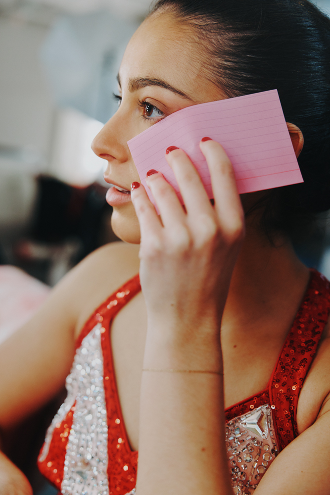 We can do up to four shows a day—each is 90 minutes with nine dances and nine costume changes—which means sometimes I have to wear makeup for over 10 hours. Prepping my skin is essential. It starts at home, where I cleanse with Youth To The People’s cleanser. It’s a refreshing way to start the day. Then I like to ice roll to wake up my face, followed by spritzing a dose of hydration with Clearstem’s Skinspray. While my face is still wet from the Skinspray, I pat on Cosrx’s snail essence. Then I finish prepping with Jergens’ Natural Glow moisturizer and Trader Joe’s SPF 40. Oh, and I prep my lips for the iconic Rockettes red lip with Vaseline.