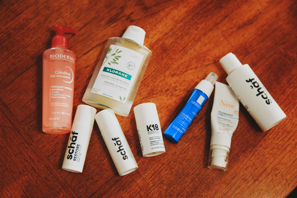 I’m a cleanser girl—I love Schaf’s cleanser, but I switch off between that one and Bioderma’s Créaline. Oh, and Guerlain’s Abeille Royal’s Cleansing Oil, which is honey-based, was my lifesaver during filming. After 15 hours at work, I’d just want to get the makeup off and go to bed, and it melted everything without making me feel like I needed to cleanse again. Stella McCartney’s Reset cleanser is a two-in-one cleanser, too—and it smells really good.
