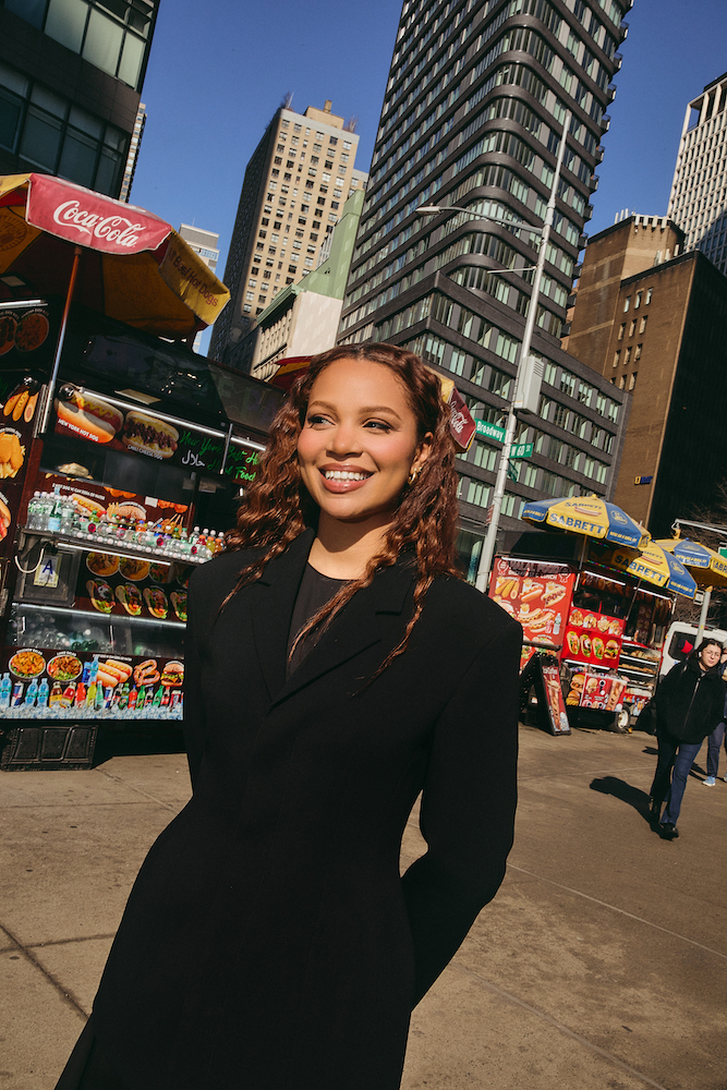 I have to shout out Sunny Isle’s 100% organic Jamaican castor oil. It’s been so good at helping me grow my hair. Since it’s so thick, I like to use it on my edges and scalp the night before wash day. I wash my hair once a week with Davines’ Alchemic Copper shampoo and conditioner. Refig’s lemongrass shampoo and blue tansy conditioner bars are everything to me, though. They’re so good for Black curly hair—and they’re ‘clean,’ which is a big deal because there are few ‘clean’ products formulated specifically for Black hair. Don’t get me wrong: I love my OG Black hair products, but these have really won me over. They smell amazing, and they’re so easy to travel with, too.