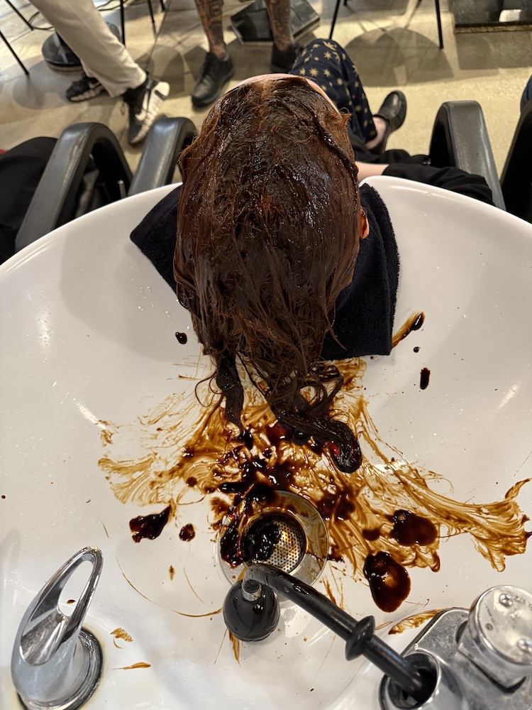 At some point between foils and finishing sprays, we ordered lunch from Leora. I had the tuna sandwich—simple, perfect, satisfying, my favorite. It’s the kind of sandwich that reminds you that life’s little pleasures are often the best ones. Then I took my Omi peptides because, if I’m going to keep everyone else’s hair in top shape, I should probably start with my own.