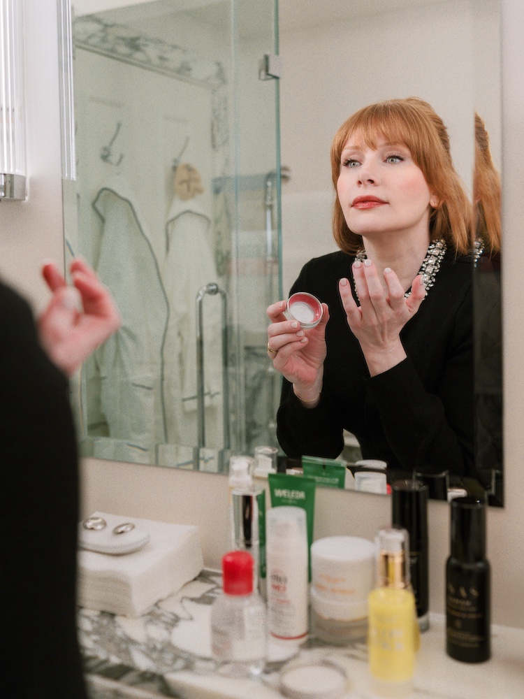 If I need a proper foundation, I use a combo—Erborian CC Red Correct and RMS ReEvolve Foundation. Actor Sissy Spacek and Vivian both underpaint and then go in with a light layer of foundation, so I do the same—I can be a little heavier-handed with bronzer, blush, or whatever, and know it’ll all get softened once I blend foundation over top. And then when I need mascara, I reach for my tube of Hourglass Unlocked.