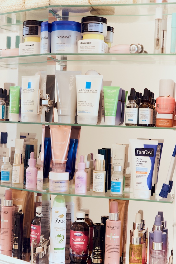 I didn’t like the idea of blindly taking a bunch of vitamins, so a little while back I went to my doctor for a full blood panel. Turns out, I had low levels of vitamin B and D. I got Cymbiotika’s Vitamin B12 + B6 and D3 + K2 + CoQ10. They’re liquid supplements, so I take 12 squirts of them with my water every morning. I add Armra colostrum to the mix, too, but honestly, I’m not sure what difference, if any, I’ve seen. That’s sort of the game with the vitamins. Like, has my skin gotten amazing? I don’t know. Has my life gotten better? I don’t know. But when I did another blood panel, my levels were normal so I guess they’re doing their job. I have actually seen a difference since starting Clearstem’s Mindbodyskin hormonal acne supplement—I break out less. And then I take the women’s multivitamin and probiotics from Ritual. They have a minty flavor so when you take it you don’t get that weird vitamin aftertaste.