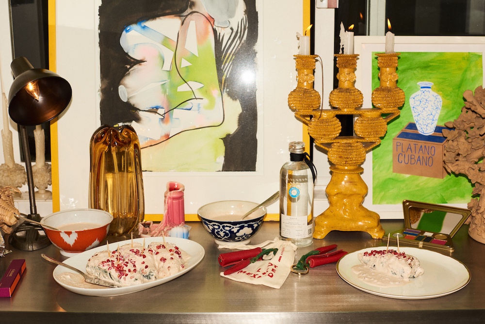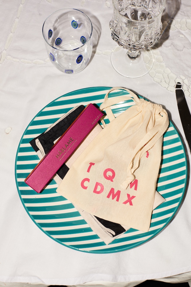 Rodrigo and I hosted a very cute dinner at his place to kick off our Independence Day celebrations. My beauty prep started with sunscreen—I like to apply some in the morning and also in the early afternoon, alternating between La Roche-Posay’s Hyalu B5 SPF and one from UTU, another plastic-free brand I helped launch a couple of years ago. Then I put on some makeup: my Admírame eye pencil in Rojo in my lower waterline for a bit of a discrete gunnery look, and Acaríciame lip serum in Vanta—it's very subtle but hydrating. After that Rodrigo and I made chiles en nogada and served tequila. We also used the night to launch our new Hablamé lip liners with a few friends from our community. Lorena Saravia, the first Mexican designer to collaborate with H&M, was there, as was my friend Rita Marimen, who runs the beautiful art gallery Ediciones Marea.