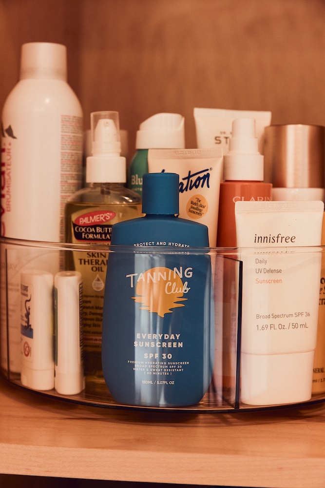 When I have any flare-ups or redness on my skin, I like to do a light layer of the Kora Noni Glow face oil. I’ve been a fan since Miranda Kerr, the founder of Kora and a friend of mine, launched it. It’s really calming for me. I keep a little bottle with me everywhere I go. Then finally, I’ll apply my sunscreen. Innisfree’s Daily SPF 36 is my favorite because it doesn’t leave a white cast or break me out.