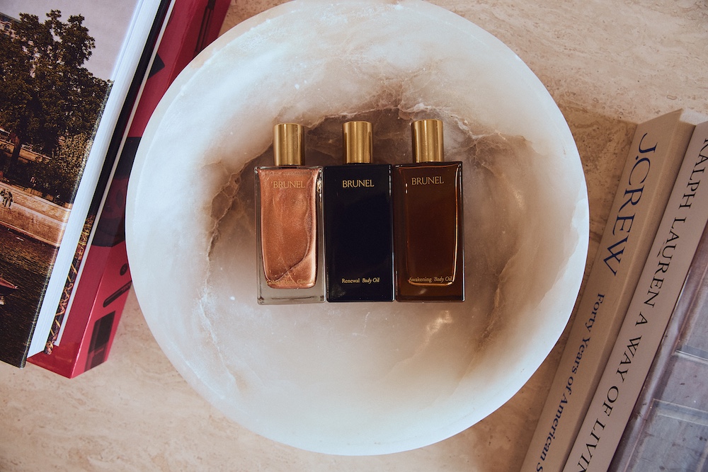 Throughout my time modelling, companies would approach me about starting a beauty brand, but I didn’t want to just slap my name on something. I’ve always said that if modeling hadn’t worked out, I would have liked to have been a makeup artist or a hairstylist, just to stay in this world. Then I met Sabrina [Castenfelt]. We bonded over our shared love of beauty and started talking about creating something together—that became Brunel, which we launched with three body oils. I’ve used oils my whole life, but I know people can be hesitant to use them because so many are greasy or sticky. Ours dry down quickly, feel silky, and smell beautiful—and beyond that, they’re packed with active ingredients like vitamin C to brighten the skin.