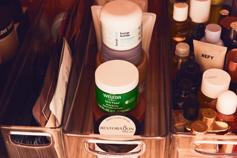 I was happy when I found Naturium’s Glow Getter body balm because it actually stays on all day. It smells like vanilla, which isn’t usually my favorite, but it’s subtle and doesn’t linger for too long. You can still put on fragrance over it. I’ll usually put one of our body oils over it—or sometimes I just go straight into them. The Awakening oil is our everyday oil. Because it’s fast-drying, you can apply it right out of the shower and still get dressed quickly after without worrying your clothes will get ruined. It smells a little floral—it has magnolia—but it’s also a little coconutty and amber-y. The Renewal oil is a little thicker. This is the one to grab if you want to relax. It smells like eucalyptus, cedarwood, and lily of the valley—there’s a spa feel to it. I like to say that it makes me feel like a wet seal because it makes you look so glossy. Then the Golden Hour oil has a bit of shimmer and bronze tone to it. It makes you look luminous but not sparkly. People always have that perfect glow on red carpets and I wanted to replicate that in a bottle.